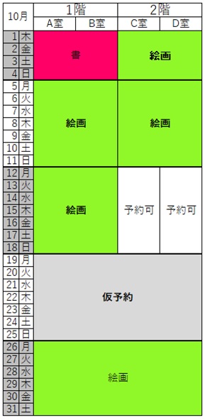 予約状況 2025年10月8日現在