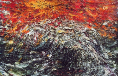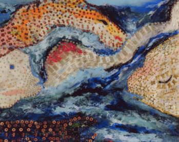 この度、アートホールで開催される展覧会にて、私自身の作品を展示する機会を いただきました。これまで絵画仲間と共同で展示を行ってまいりましだが今回は、会場の一部を個展として使わせていただくことになりました。半分は引き続き仲間たちとの展示となっており それぞれの表現が響き合う空間となれば 幸いです。 今回展示するのは「破壊と再生」をテーマにしたシリーズ作品です。ベニヤ板にスクラップとして破棄される金属やタイル、アクリル絵具などを組み合わせ壊れることの中にある可能性、再構築される美しさを探っています。素材の持つ質感や重なりが、新たな風景や物語を生み出せたらと思っています。 「海」シリーズ作品 キャンバスに油絵具の作品も一部展示いたします。どうぞご高覧いただけますと幸いです。